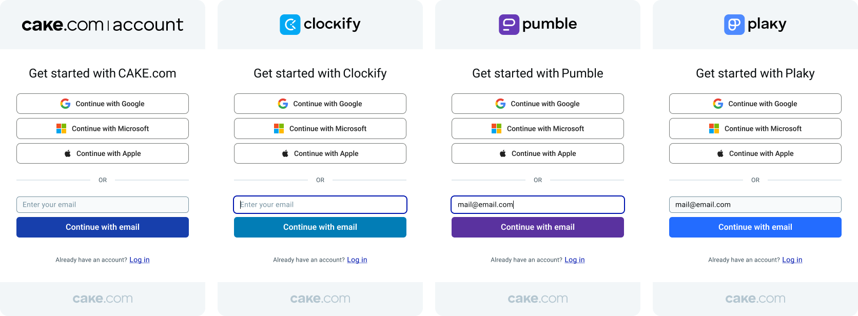 Login and Sign up were one of the first cross-suite flows, for these we made reusable components for all the suite products, branded them and made sure they are flexible enough to meet all the anticipated cases and changes in the future, as well as current products.